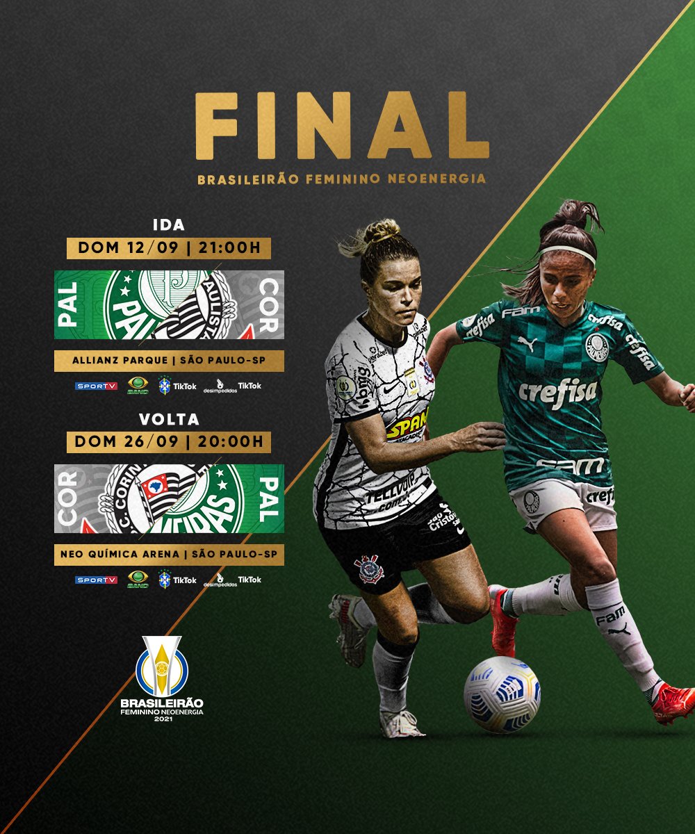 A CBF divulgou na tarde desta quarta-feira (8) as datas, horários e transmissões das finais do Campeonato Brasileiro Feminino entre Palmeiras x Corinthians.